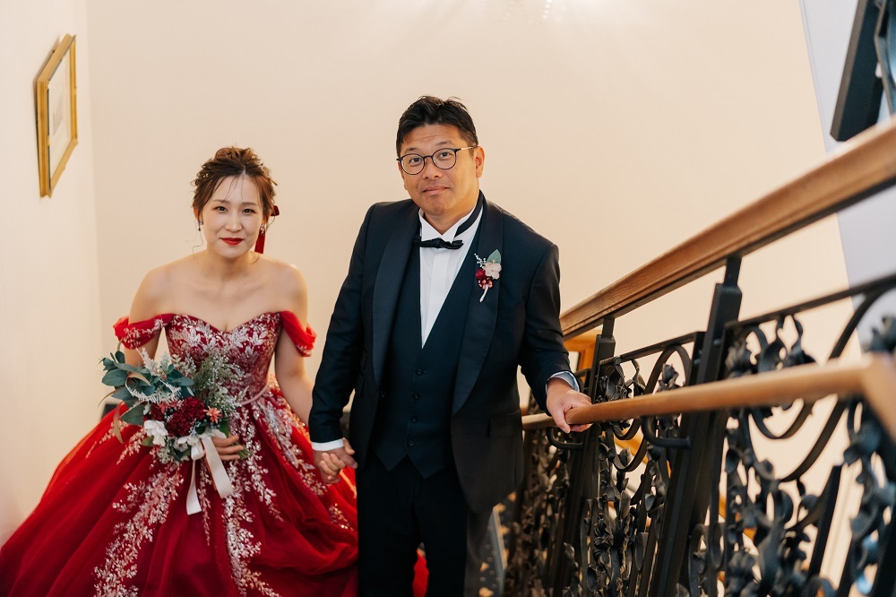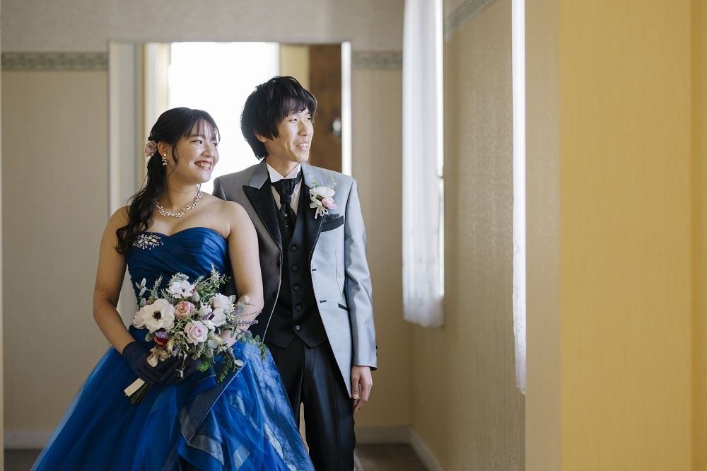 これまでご紹介したお写真と見比べると、パステルカラーのドレスにタキシードのお色味でイメージががらっと変わることがお分かりいただけると思います。