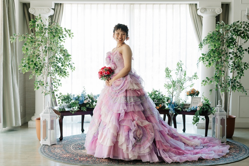 カラードレスPick Up!!|プリンセスラインのピンク×パープルドレス♡