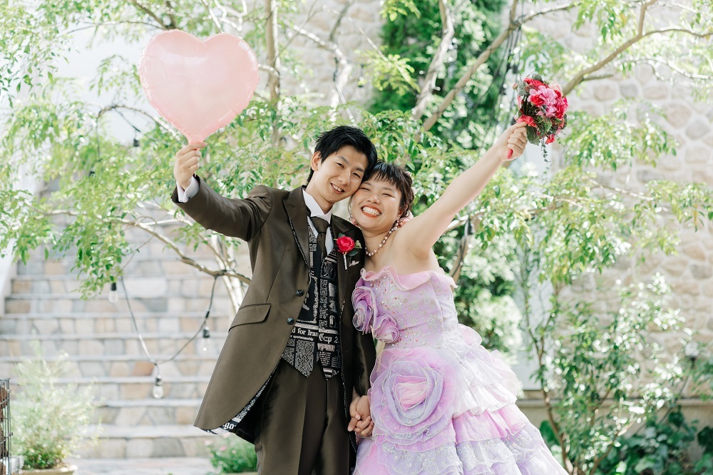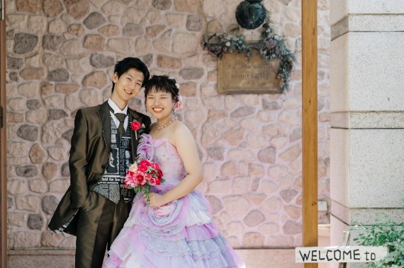 今月は、ピンク×パープルのカラードレスをご紹介いたします♡
