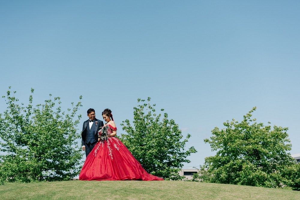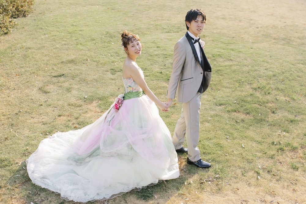 公園や披露宴会場、ガーデンなどどこに行ってもお色がしっかりと映えますよ☆彡