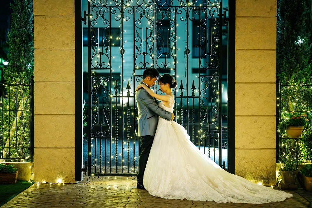 実際の結婚式場を使って撮影ができる魅力のひとつは、このイルミネーション撮影°˖✧