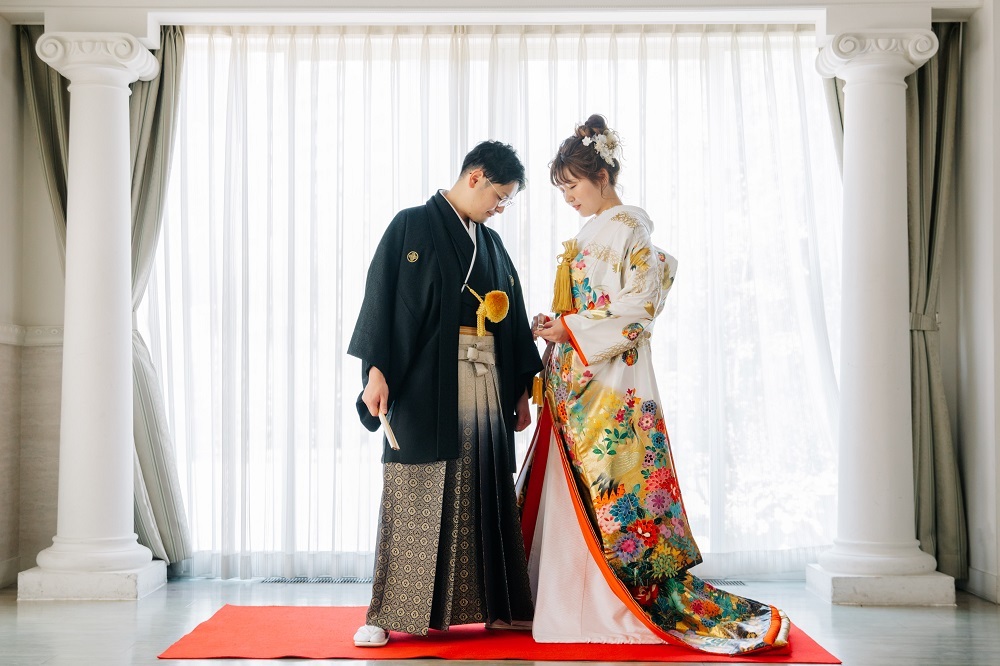 ウェディングで着る和装というと、赤色や黒をイメージする方も多いのではないでしょうか。