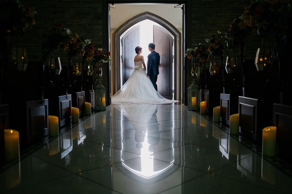 本物の結婚式場、本物のチャペルで撮影するからこそ、扉にもしっかりと重厚感があるつくりになっています。