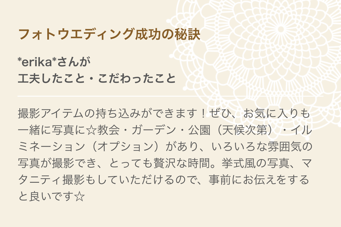クチコミ紹介|みなさまからのクチコミ紹介~フォトウェディング成功の秘訣~