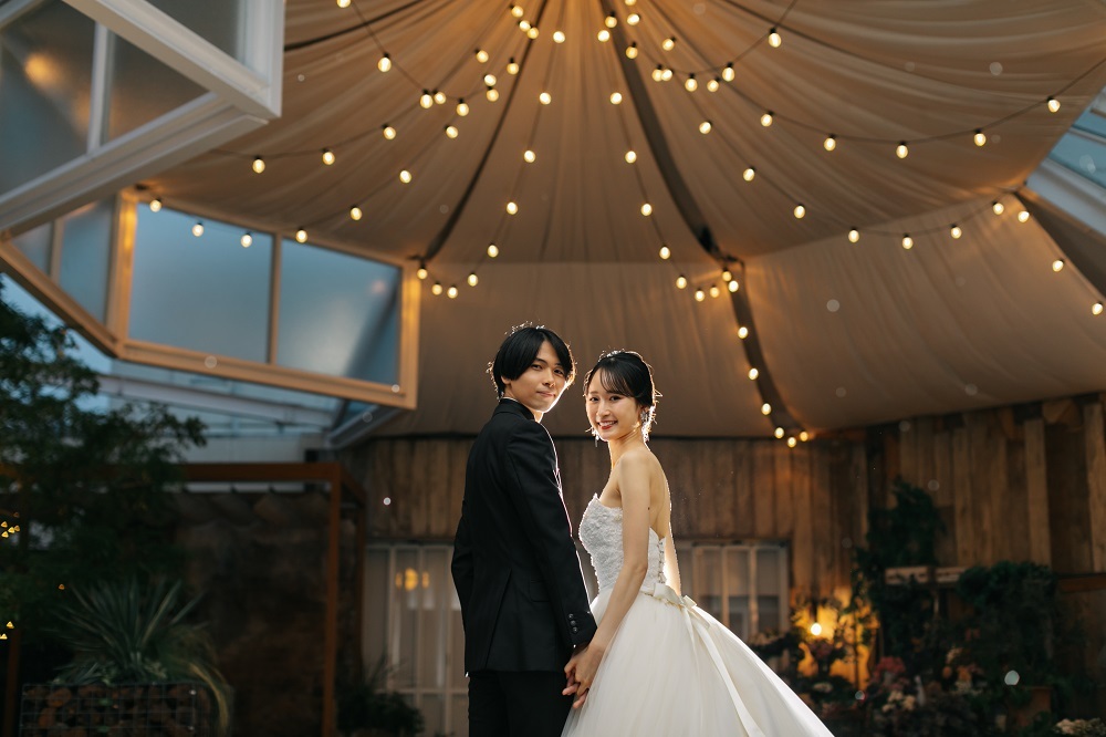 この時期は、日没は早いのですが、なかなか夕方以降にウェディングドレスで外に出るのは寒いですよね…