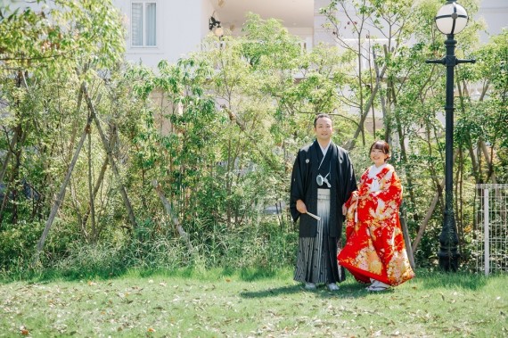 こちらのご新郎様は、袴にホワイトを取り入れたことで、シックになりすぎないようにしました。