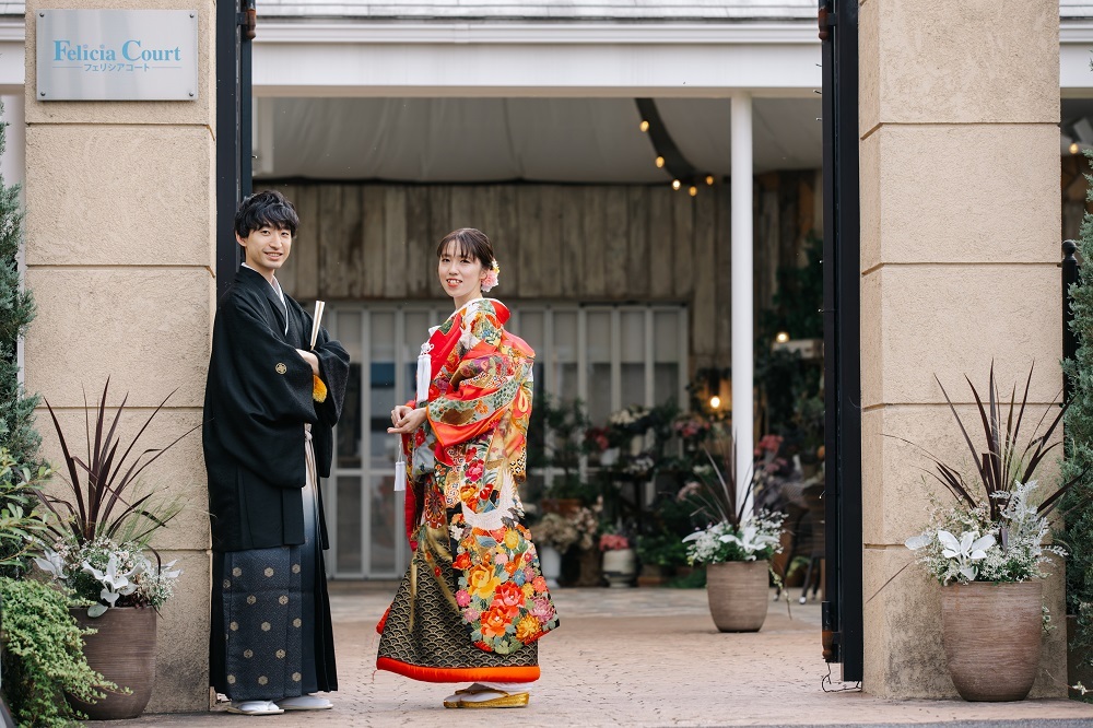 ブラックが入っている色打掛にすると、おふたりに統一感がうまれますよ☆彡