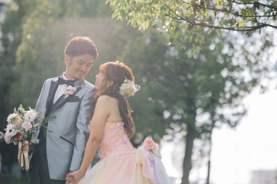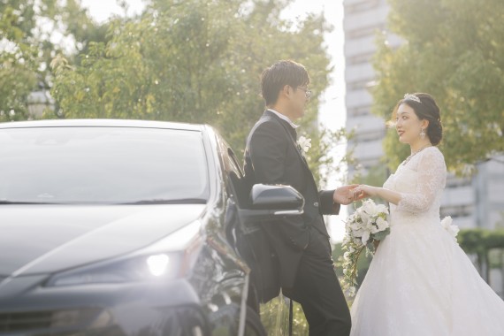 結婚式場のため、駐車場が広く使えるというメリットを活かし、撮れるショットです。