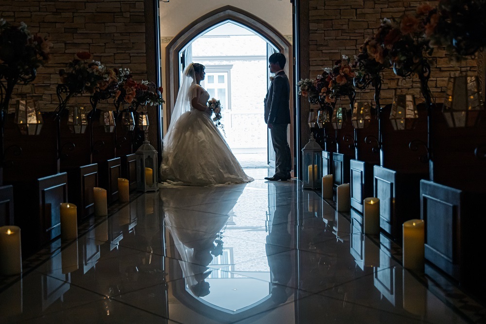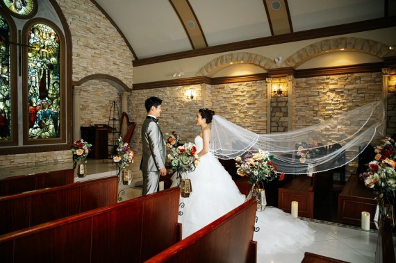 本物のチャペルを使用するからこそ、奥行き感をしっかりと出し、余白を活かしたお写真が撮影可能です!