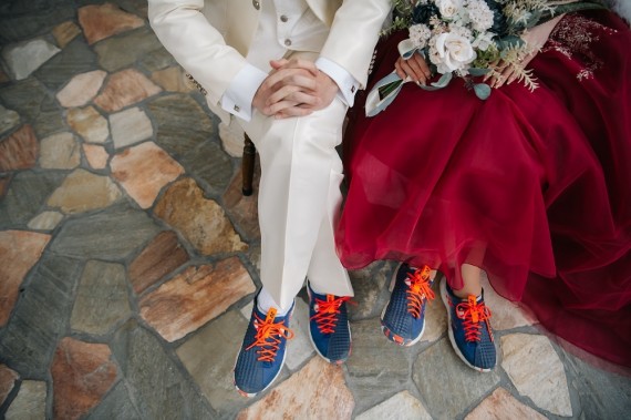 タキシードとドレス×スニーカーという組み合わせがラフになっていいですね◎