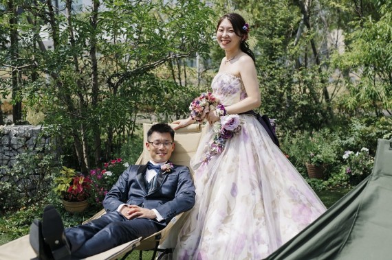 フルールは実際に結婚式がおこなわれている場所を使用して、フォトウェディングをおこなうので、キャンプグッズでさえも置ける広いガーデンがあるんです!