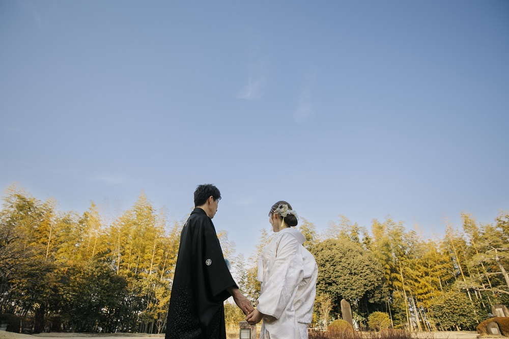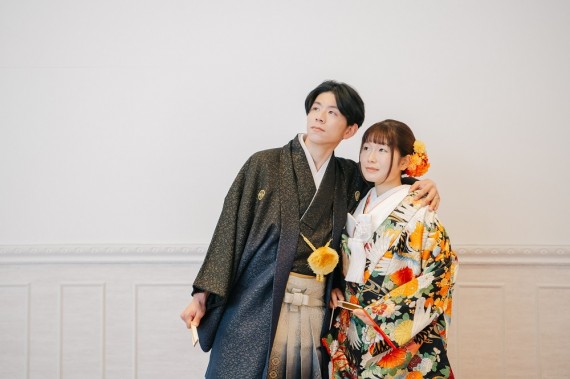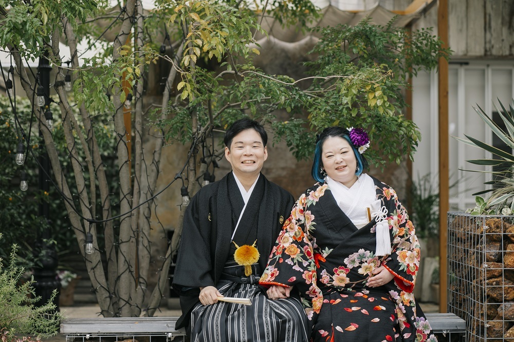 黒と言っても、模様が色鮮やかなので、ご新郎様の黒の紋付袴と合わせても、お写真が華やかになりますね☀