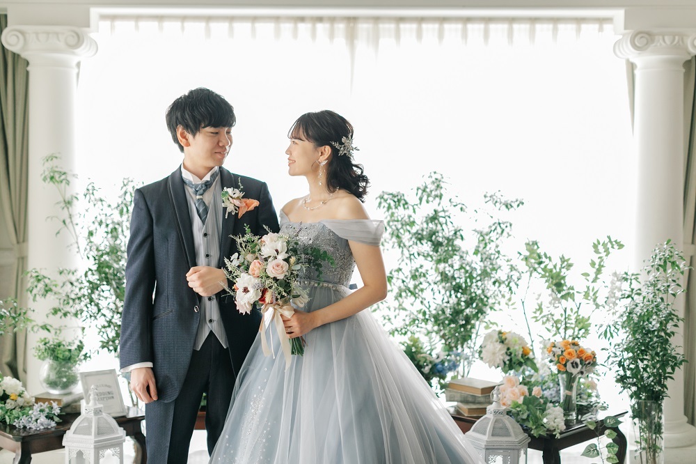 強い色がないため、水色のドレスも溶け込み、ふんわりとしたイメージを出すのにピッタリ!