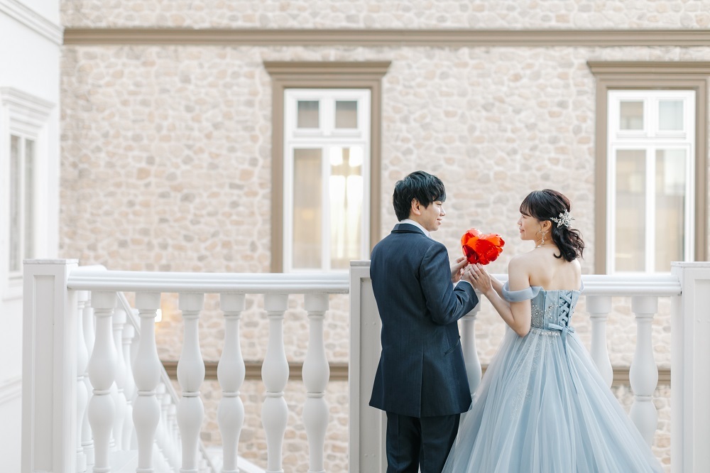 フルールで撮影するガーデンや、披露宴会場のお花スポットの前にもお色がよくなじみます。