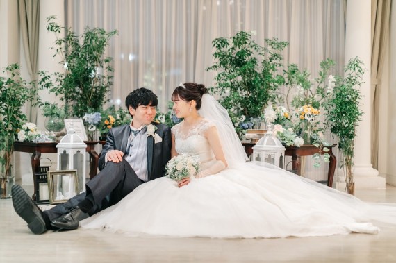 和装も洋装も、どんな色のお衣裳でも合う披露宴会場は撮っておきたいフォトスポットのひとつです!