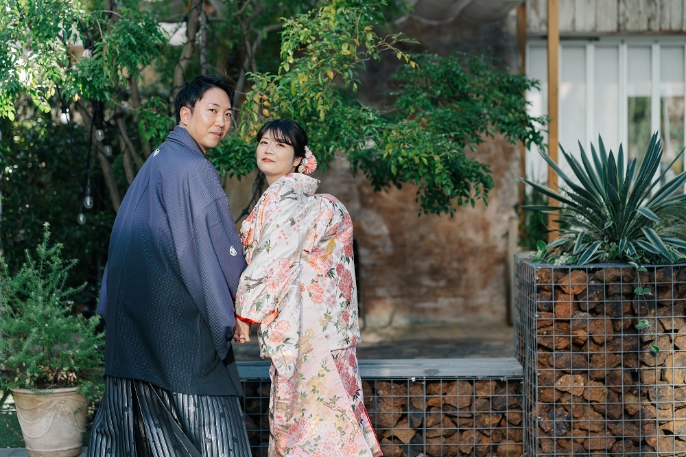 ガーデンでのショットは、どんなお色の和装でも似合う、フルールの和装撮影では定番のフォトスポットです☆彡