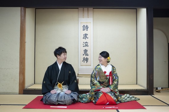 丈山苑の背景とおふたりの全身がしっかりと映った1枚になりました!