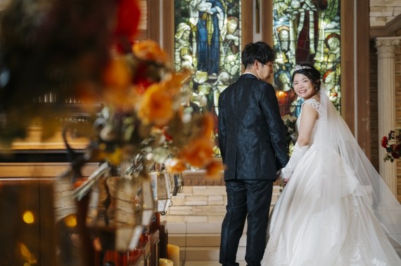 ロケーションから帰ってきたあとは、ウェディングドレス&タキシードにお色直しをして、チャペルにて洋装撮影スタート!☆彡