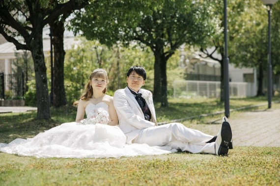 芝生に座ることで、おふたりの自然体を残すことができるのがポイント!◎