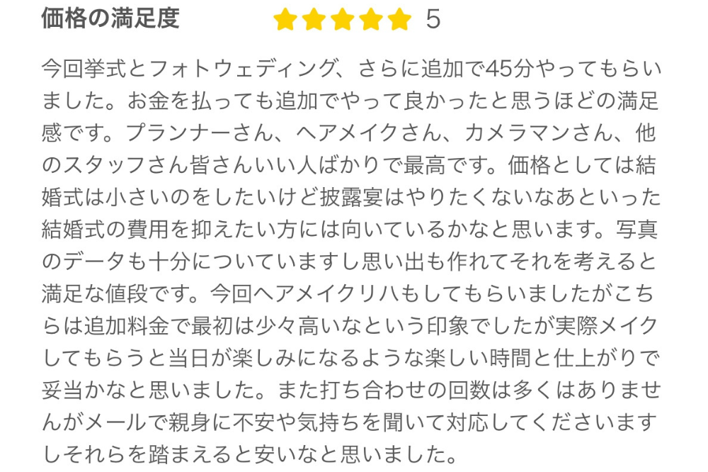 価格に合わせて、スタッフやメイクのことまでお褒めいただき、とても嬉しく思っております♡