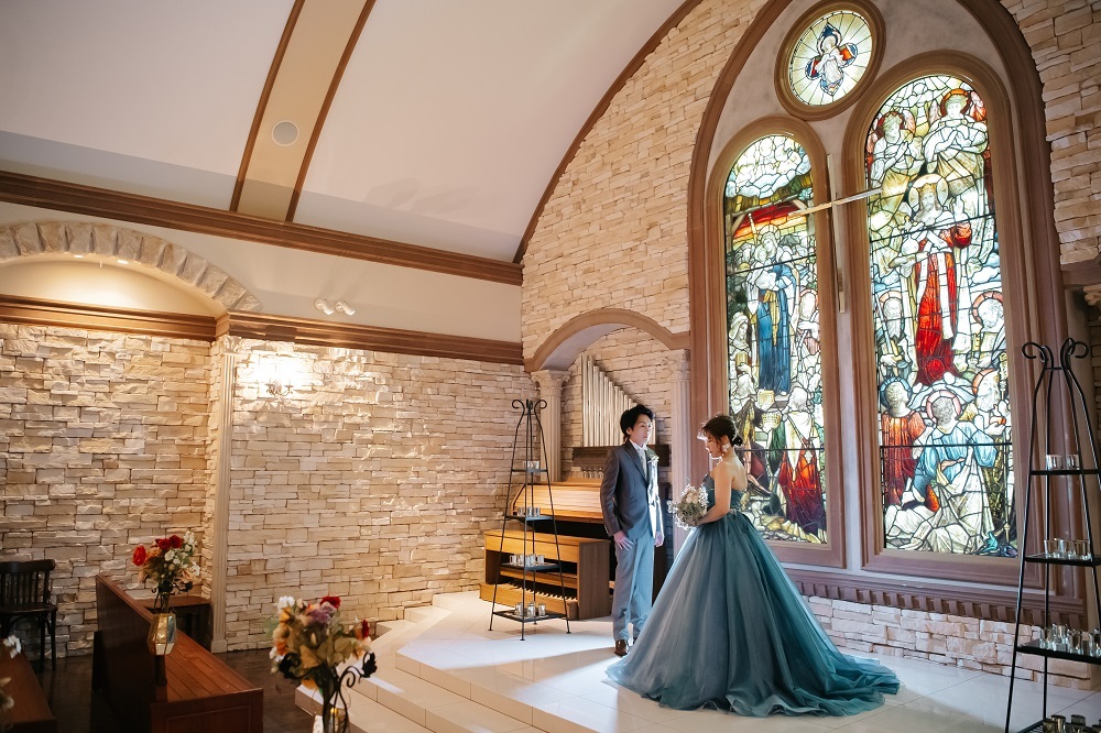 必見!|フルールで絶対に撮りたい!ステンドグラスから七色の光が降り注ぐチャペル✨