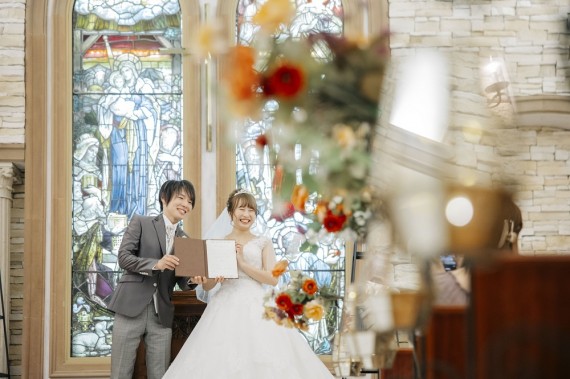 挙式風セレモニー内で、お手紙を読み上げたり、おふたりオリジナルの結婚証明書を読んだり…