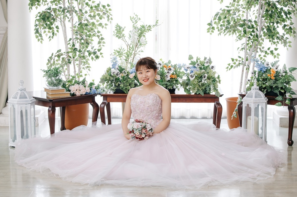 今回は、ブルベ夏さんにピッタリの淡いピンクのカラードレスをご紹介いたします。