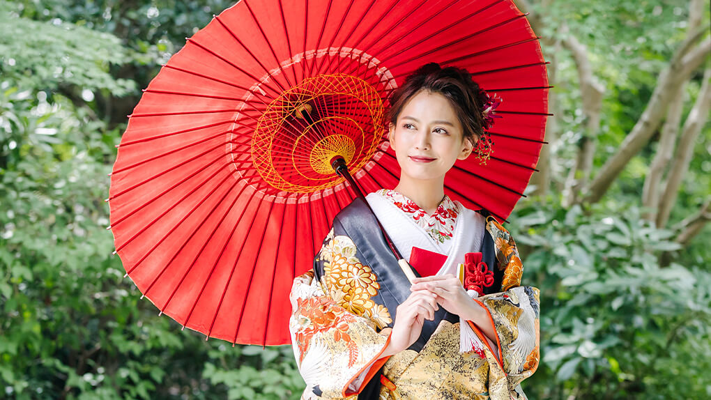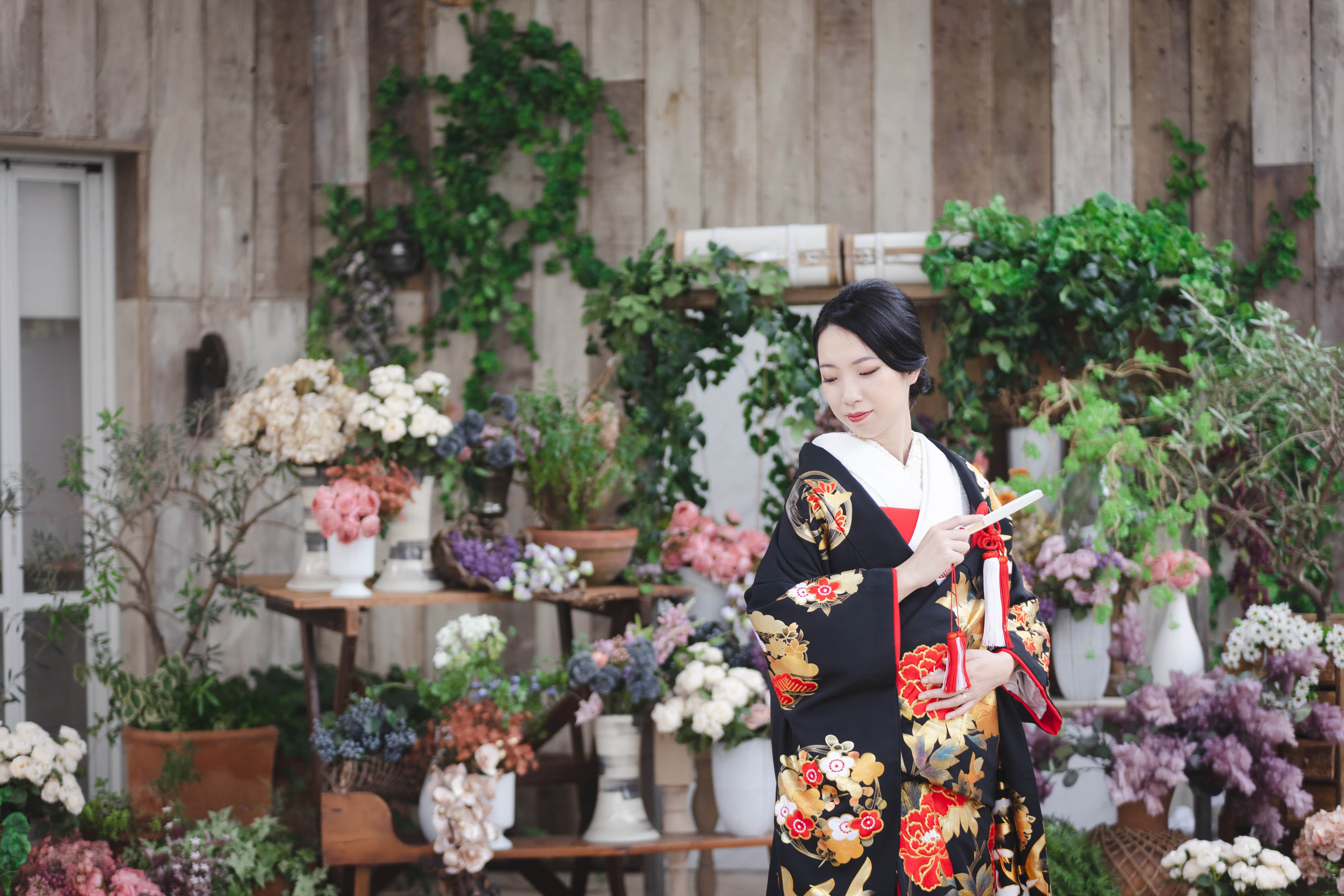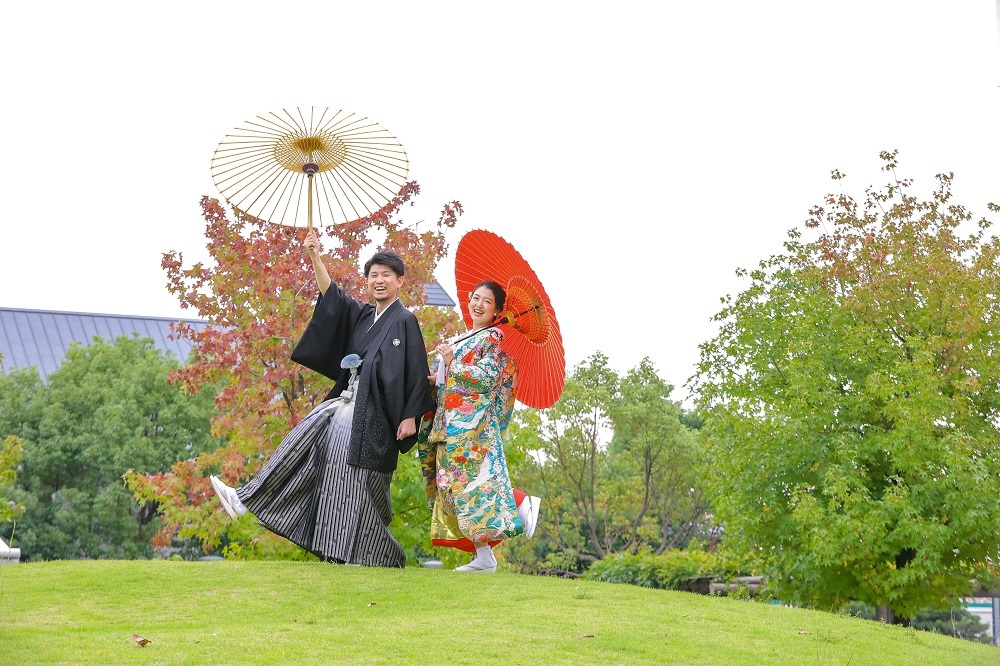 日本庭園での和装フォト 緑あふれる公園でのドレスフォトなどご希望に合わせたロケーションフォト